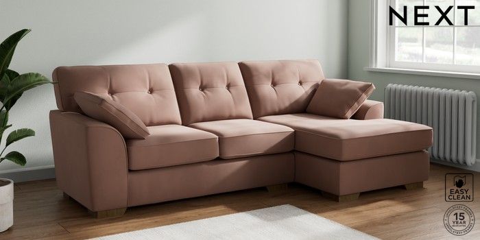7.2.10 Buy Stamford Buttoned Back Medium Sofa Chaise - Right Hand Plush Velvet Easy Clean Mid Natural Large Square Angle - Mid from the Seasons online shop Click here to use our website with more accessibility support, for example screen readers