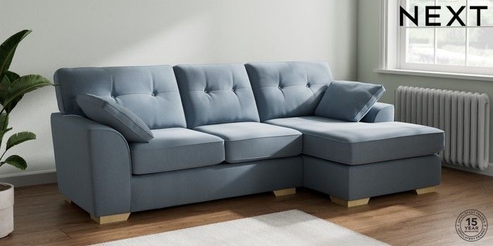 7.2.10 Buy Stamford Buttoned Back Medium Sofa Chaise - Right Hand Relaxed Linen Look Mid Blue Large Square Angle - Light from the Seasons online shop Click here to use our website with more accessibility support, for example screen readers