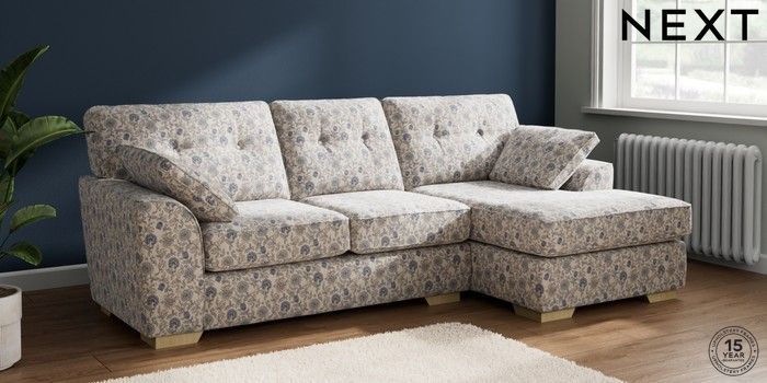 7.3.1 Buy Stamford Buttoned Back Medium Sofa Chaise - Right Hand Relaxed Linen Look Print Woodblock Floral Blue Large Square Angle - Light from the Seasons online shop Click here to use our website with more accessibility support, for example screen readers