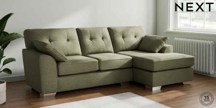 7.3.1 Buy Stamford Buttoned Back Medium Sofa Chaise - Right Hand Tweedy Chenille Mid Moss Green Large Square Angle - Chrome Metal from the Seasons online shop Click here to use our website with more accessibility support, for example screen readers