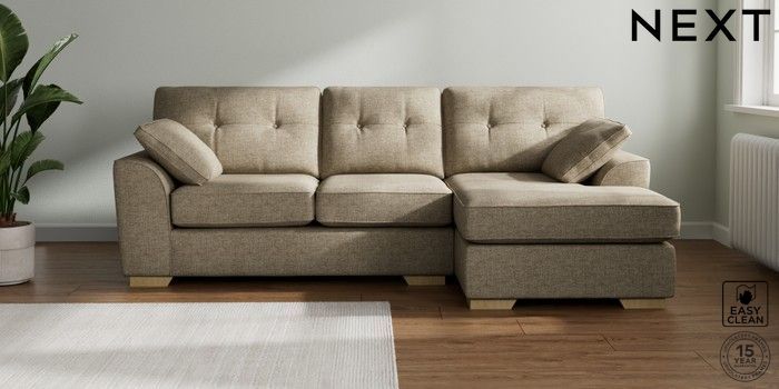 7.2.10 Buy Stamford Buttoned Back Medium Sofa Chaise - Right Hand Woven Chenille Easy Clean Mid Natural Large Square Angle - Light from the Seasons online shop Click here to use our website with more accessibility support, for example screen readers