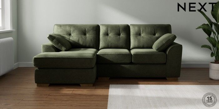 7.2.10 Buy Stamford Buttoned Back Small Sofa Chaise - Left Hand Boucle Chenille Dark Moss Green Large Square Angle - Mid from the Seasons online shop Click here to use our website with more accessibility support, for example screen readers