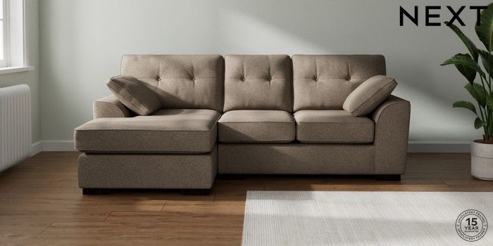 7.2.10 Buy Stamford Buttoned Back Small Sofa Chaise - Left Hand Chunky Weave Dark Natural Large Square Angle - Dark from the Seasons online shop Click here to use our website with more accessibility support, for example screen readers
