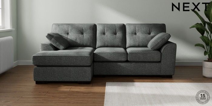 7.2.10 Buy Stamford Buttoned Back Small Sofa Chaise - Left Hand Cotswold Chenille Dark Grey Large Square Angle - Dark from the Seasons online shop Click here to use our website with more accessibility support, for example screen readers