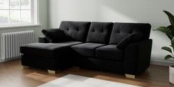 7.2.10 Buy Stamford Buttoned Back Small Sofa Chaise - Left Hand Fine Chenille Easy Clean Black Large Square Angle - Brushed Brass from the Seasons online shop Click here to use our website with more accessibility support, for example screen readers
