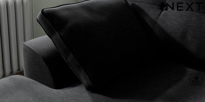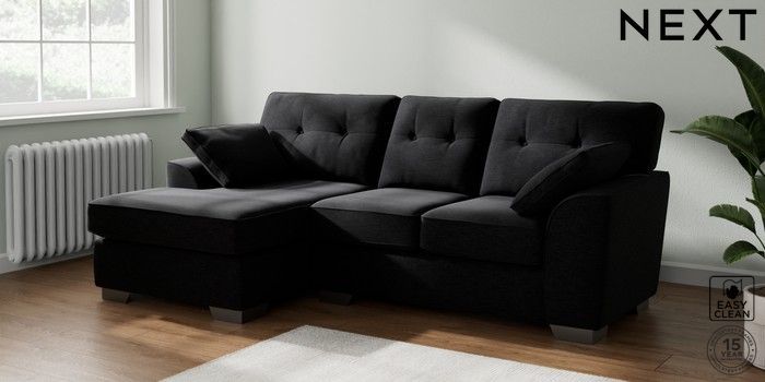 7.2.10 Buy Stamford Buttoned Back Small Sofa Chaise - Left Hand Fine Chenille Easy Clean Black Large Square Angle - Gunmetal from the Seasons online shop Click here to use our website with more accessibility support, for example screen readers