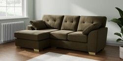 7.2.10 Buy Stamford Buttoned Back Small Sofa Chaise - Left Hand Fine Chenille Easy Clean Dark Moss Green Large Square Angle - Brushed Brass from the Seasons online shop Click here to use our website with more accessibility support, for example screen readers