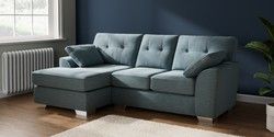 7.2.10 Buy Stamford Buttoned Back Small Sofa Chaise - Left Hand Fine Chenille Easy Clean Mid Blue Large Square Angle - Chrome Metal from the Seasons online shop Click here to use our website with more accessibility support, for example screen readers