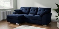 7.2.10 Buy Stamford Buttoned Back Small Sofa Chaise - Left Hand Luxe Chenille Navy Blue Large Square Angle - Chrome Metal from the Seasons online shop Click here to use our website with more accessibility support, for example screen readers