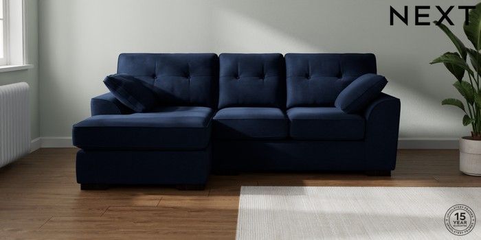 7.2.10 Buy Stamford Buttoned Back Small Sofa Chaise - Left Hand Luxe Chenille Navy Blue Large Square Angle - Dark from the Seasons online shop Click here to use our website with more accessibility support, for example screen readers