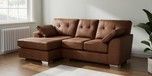 7.3.1 Buy Stamford Buttoned Back Small Sofa Chaise - Left Hand Monza Faux Leather Easy Clean Chestnut Brown Large Square Angle - Chrome Metal from the Seasons online shop Click here to use our website with more accessibility support, for example screen readers