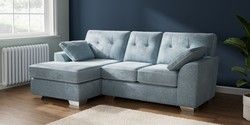 7.2.10 Buy Stamford Buttoned Back Small Sofa Chaise - Left Hand Plush Chenille Light Blue Large Square Angle - Chrome Metal from the Seasons online shop Click here to use our website with more accessibility support, for example screen readers