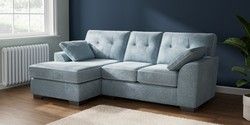 7.2.10 Buy Stamford Buttoned Back Small Sofa Chaise - Left Hand Plush Chenille Light Blue Large Square Angle - Gunmetal from the Seasons online shop Click here to use our website with more accessibility support, for example screen readers