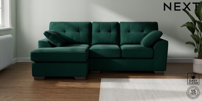 7.3.1 Buy Stamford Buttoned Back Small Sofa Chaise - Left Hand Plush Velvet Easy Clean Bottle Green Large Square Angle - Gunmetal from the Seasons online shop Click here to use our website with more accessibility support, for example screen readers
