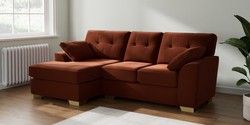 7.3.1 Buy Stamford Buttoned Back Small Sofa Chaise - Left Hand Plush Velvet Easy Clean Ginger Orange Large Square Angle - Brushed Brass from the Seasons online shop Click here to use our website with more accessibility support, for example screen readers