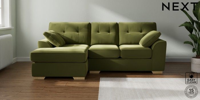 7.3.1 Buy Stamford Buttoned Back Small Sofa Chaise - Left Hand Plush Velvet Easy Clean Mid Olive Green Large Square Angle - Light from the Seasons online shop Click here to use our website with more accessibility support, for example screen readers