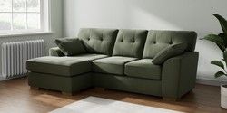 7.2.10 Buy Stamford Buttoned Back Small Sofa Chaise - Left Hand Relaxed Linen Look Dark Green Large Square Angle - Mid from the Seasons online shop Click here to use our website with more accessibility support, for example screen readers