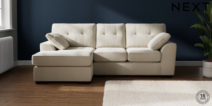 7.2.10 Buy Stamford Buttoned Back Small Sofa Chaise - Left Hand Relaxed Linen Look Oyster Large Square Angle - Dark from the Seasons online shop Click here to use our website with more accessibility support, for example screen readers