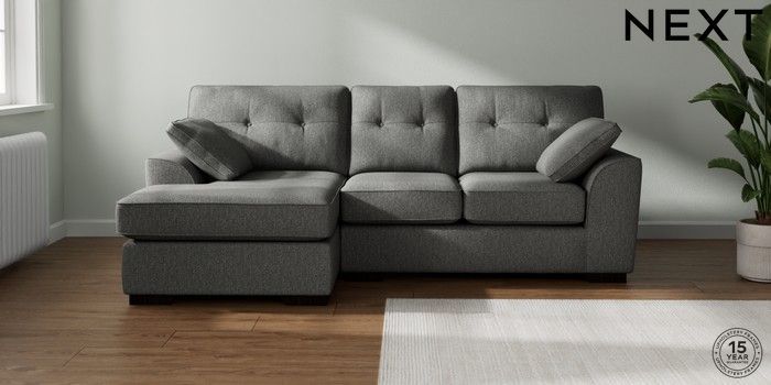 7.2.10 Buy Stamford Buttoned Back Small Sofa Chaise - Left Hand Tweedy Chenille Dark Grey Large Square Angle - Dark from the Seasons online shop Click here to use our website with more accessibility support, for example screen readers