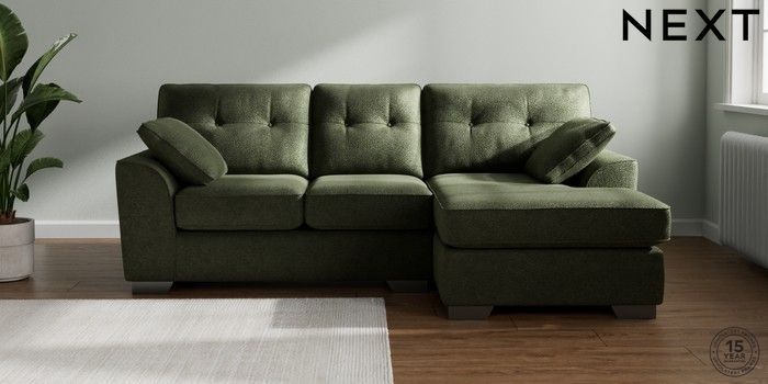 7.3.1 Buy Stamford Buttoned Back Small Sofa Chaise - Right Hand Boucle Chenille Dark Moss Green Large Square Angle - Gunmetal from the Seasons online shop Click here to use our website with more accessibility support, for example screen readers