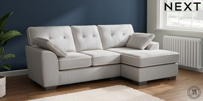 7.3.1 Buy Stamford Buttoned Back Small Sofa Chaise - Right Hand Chenille Stripe Slate Blue Large Square Angle - Gunmetal from the Seasons online shop Click here to use our website with more accessibility support, for example screen readers