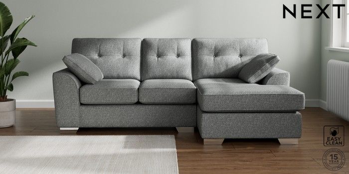7.3.1 Buy Stamford Buttoned Back Small Sofa Chaise - Right Hand Chunky Boucle Easy Clean Mid Grey Large Square Angle - Chrome Metal from the Seasons online shop Click here to use our website with more accessibility support, for example screen readers