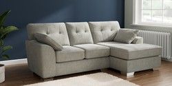 7.2.10 Buy Stamford Buttoned Back Small Sofa Chaise - Right Hand Chunky Chenille Light Grey Large Square Angle - Chrome Metal from the Seasons online shop Click here to use our website with more accessibility support, for example screen readers