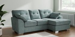 7.3.1 Buy Stamford Buttoned Back Small Sofa Chaise - Right Hand Chunky Chenille Light Teal Green Large Square Angle - Chrome Metal from the Seasons online shop Click here to use our website with more accessibility support, for example screen readers