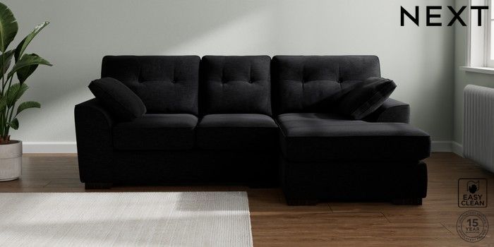 7.2.10 Buy Stamford Buttoned Back Small Sofa Chaise - Right Hand Fine Chenille Easy Clean Black Large Square Angle - Dark from the Seasons online shop Click here to use our website with more accessibility support, for example screen readers