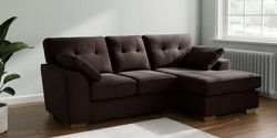 7.2.10 Buy Stamford Buttoned Back Small Sofa Chaise - Right Hand Fine Chenille Easy Clean Chocolate Brown Large Square Angle - Brushed Brass from the Seasons online shop Click here to use our website with more accessibility support, for example screen readers