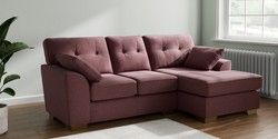 7.3.1 Buy Stamford Buttoned Back Small Sofa Chaise - Right Hand Fine Chenille Easy Clean Mid Mulberry Purple Large Square Angle - Brushed Brass from the Seasons online shop Click here to use our website with more accessibility support, for example screen readers