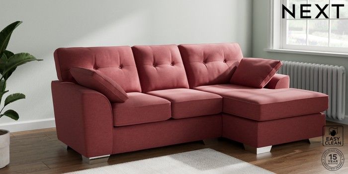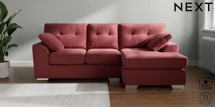 7.3.1 Buy Stamford Buttoned Back Small Sofa Chaise - Right Hand Fine Chenille Easy Clean Mid Pink Large Square Angle - Chrome Metal from the Seasons online shop Click here to use our website with more accessibility support, for example screen readers