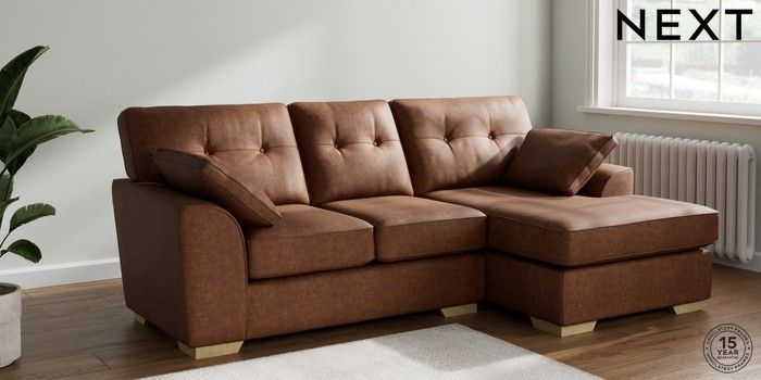 7.3.1 Buy Stamford Buttoned Back Small Sofa Chaise - Right Hand Monza Faux Leather Easy Clean Chestnut Brown Large Square Angle - Light from the Seasons online shop Click here to use our website with more accessibility support, for example screen readers