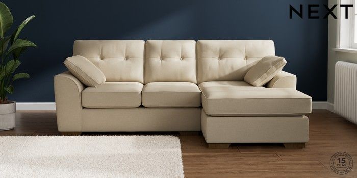 7.2.10 Buy Stamford Buttoned Back Small Sofa Chaise - Right Hand Natural Mix Light Natural Large Square Angle - Mid from the Seasons online shop Click here to use our website with more accessibility support, for example screen readers