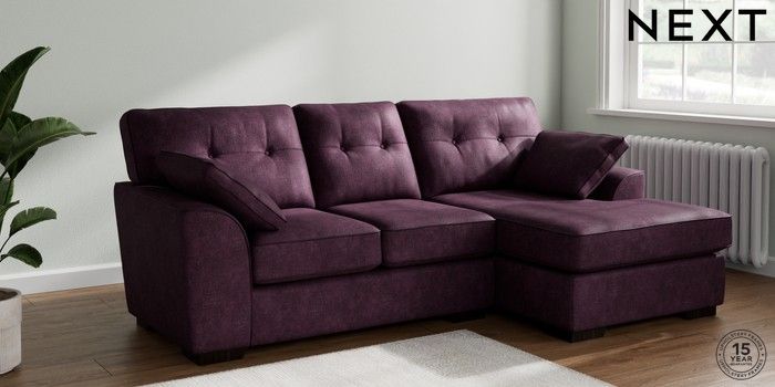 7.3.1 Buy Stamford Buttoned Back Small Sofa Chaise - Right Hand Plush Chenille Dark Plum Purple Large Square Angle - Dark from the Seasons online shop Click here to use our website with more accessibility support, for example screen readers