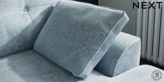 7.2.10 Buy Stamford Buttoned Back Small Sofa Chaise - Right Hand Plush Chenille Light Blue Large Square Angle - Mid from the Seasons online shop Click here to use our website with more accessibility support, for example screen readers