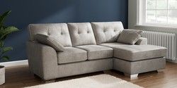 7.2.10 Buy Stamford Buttoned Back Small Sofa Chaise - Right Hand Plush Chenille Light Grey Large Square Angle - Chrome Metal from the Seasons online shop Click here to use our website with more accessibility support, for example screen readers