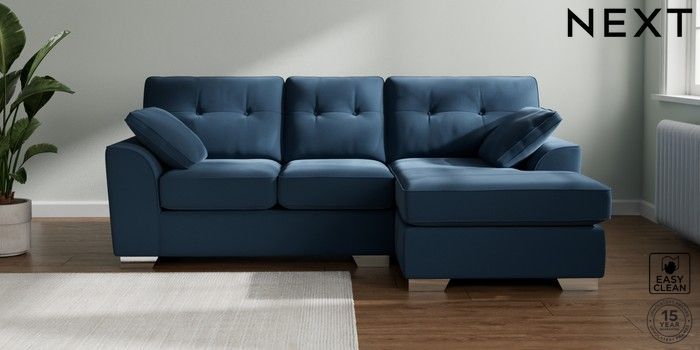 7.3.1 Buy Stamford Buttoned Back Small Sofa Chaise - Right Hand Plush Velvet Easy Clean Airforce Blue Large Square Angle - Chrome Metal from the Seasons online shop Click here to use our website with more accessibility support, for example screen readers
