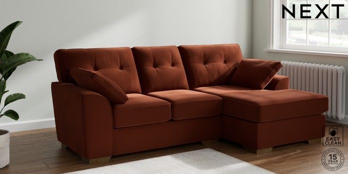 7.3.1 Buy Stamford Buttoned Back Small Sofa Chaise - Right Hand Plush Velvet Easy Clean Ginger Orange Large Square Angle - Mid from the Seasons online shop Click here to use our website with more accessibility support, for example screen readers