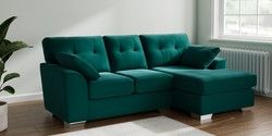 7.3.1 Buy Stamford Buttoned Back Small Sofa Chaise - Right Hand Plush Velvet Easy Clean Juniper Green Large Square Angle - Chrome Metal from the Seasons online shop Click here to use our website with more accessibility support, for example screen readers