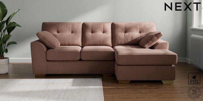 7.3.1 Buy Stamford Buttoned Back Small Sofa Chaise - Right Hand Plush Velvet Easy Clean Mid Natural Large Square Angle - Brushed Brass from the Seasons online shop Click here to use our website with more accessibility support, for example screen readers