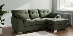 7.3.1 Buy Stamford Buttoned Back Small Sofa Chaise - Right Hand Relaxed Linen Look Dark Green Large Square Angle - Chrome Metal from the Seasons online shop Click here to use our website with more accessibility support, for example screen readers