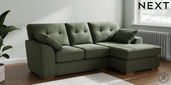 7.2.10 Buy Stamford Buttoned Back Small Sofa Chaise - Right Hand Relaxed Linen Look Dark Green Large Square Angle - Mid from the Seasons online shop Click here to use our website with more accessibility support, for example screen readers