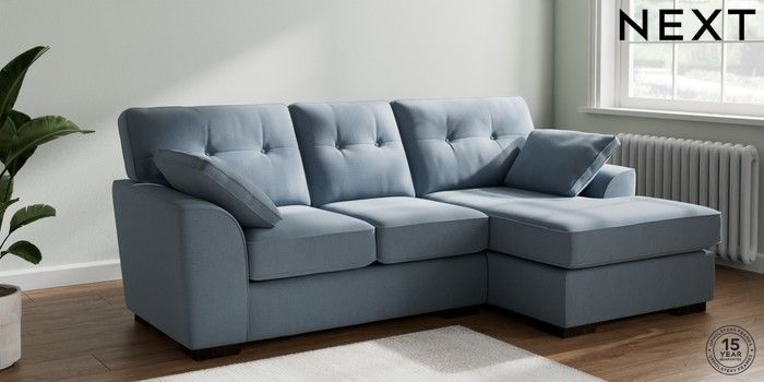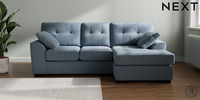 7.2.10 Buy Stamford Buttoned Back Small Sofa Chaise - Right Hand Relaxed Linen Look Mid Blue Large Square Angle - Dark from the Seasons online shop Click here to use our website with more accessibility support, for example screen readers
