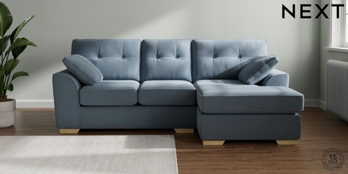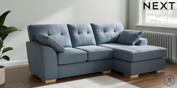 7.2.10 Buy Stamford Buttoned Back Small Sofa Chaise - Right Hand Relaxed Linen Look Mid Blue Large Square Angle - Light from the Seasons online shop Click here to use our website with more accessibility support, for example screen readers