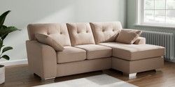 7.3.1 Buy Stamford Buttoned Back Small Sofa Chaise - Right Hand Relaxed Linen Look Mid Natural Large Square Angle - Chrome Metal from the Seasons online shop Click here to use our website with more accessibility support, for example screen readers