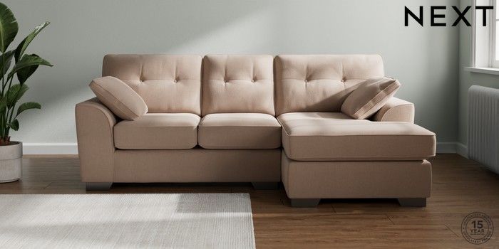 7.3.1 Buy Stamford Buttoned Back Small Sofa Chaise - Right Hand Relaxed Linen Look Mid Natural Large Square Angle - Gunmetal from the Seasons online shop Click here to use our website with more accessibility support, for example screen readers