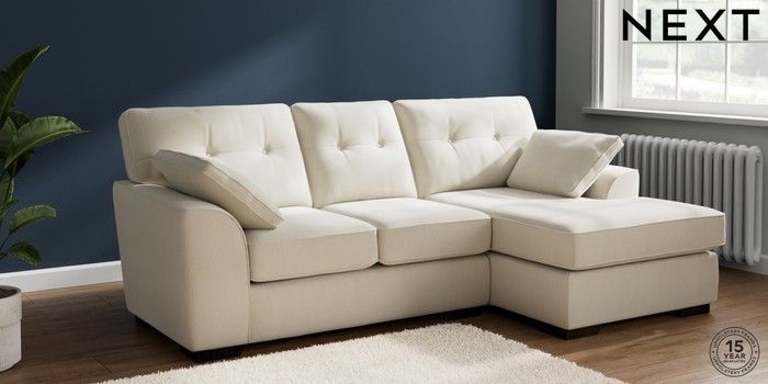 7.2.10 Buy Stamford Buttoned Back Small Sofa Chaise - Right Hand Relaxed Linen Look Oyster Large Square Angle - Dark from the Seasons online shop Click here to use our website with more accessibility support, for example screen readers