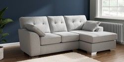 7.3.1 Buy Stamford Buttoned Back Small Sofa Chaise - Right Hand Tweedy Blend Easy Clean Light Silver Grey Large Square Angle - Chrome Metal from the Seasons online shop Click here to use our website with more accessibility support, for example screen readers