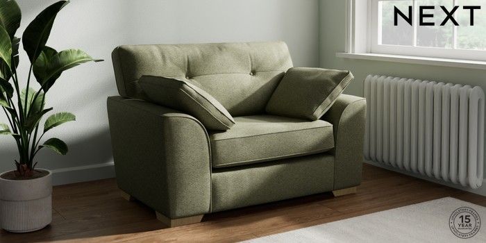 7.2.10 Buy Stamford Buttoned Back Snuggle Tweedy Chenille Mid Moss Green Large Square Angle - Light from the Seasons online shop Click here to use our website with more accessibility support, for example screen readers